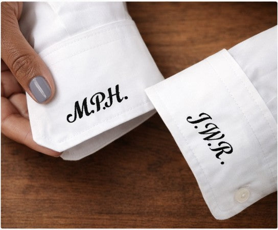 Custom Dress Shirt Cuff Monogram | Personalized Embroidered Shirt Cuffs | Bespoke Monogram Embroidery