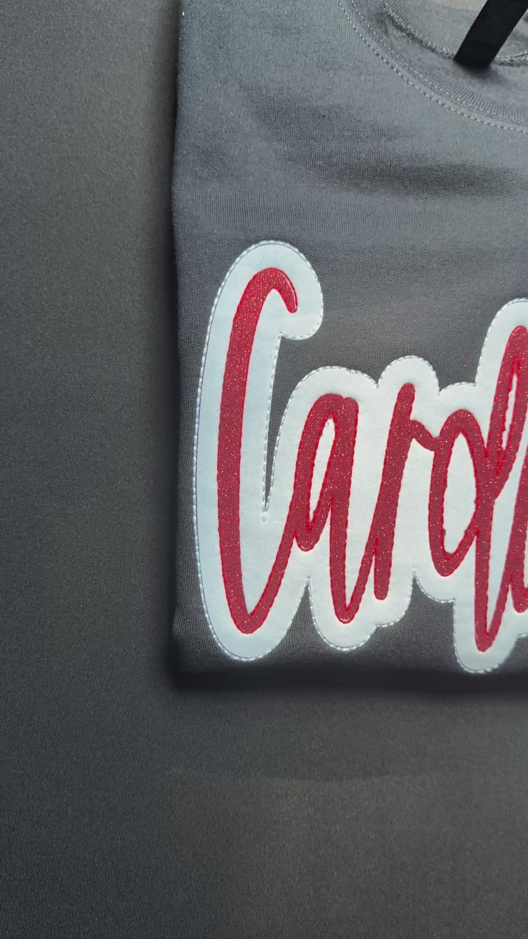 From the dropdowns, please select your glitter HTV color for the word Cardinals and the HTV Flock color.